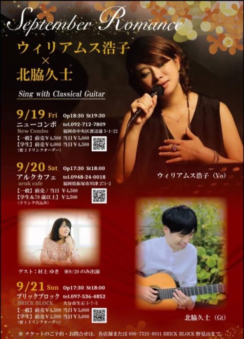 September Romance ウイリアムス浩子X北脇久士 produced by BRICK BLOCK 九州ツアー3days ウイリアムス浩子さんの九州ツアー2日目 飯塚アルクカフェでのライブにピアノとコーラスでゲスト参加させていた
